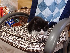 さほど強くはないが雨は降り続き、気温も上がらない。支援物資を仕入れてばあちゃんと猫の様子を見に行く。