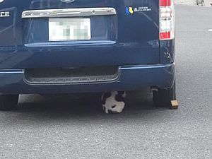 支援物資をもってばあちゃんと猫の様子を見に行く。カウ君が待っていた。