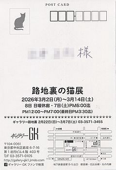 先日銀座のギャラリーで開催された「路地裏の猫展」に行ってきた。古くから知っている顔なじみの現代猫作家さんとは異なり新たな発見もたくさんある。画像は少ないが参考のためにアップした。昨年も見に行ったが、おそらく来年も開催されるであろう。このような展示は自分に合った現代作家さんを探すいい機会になるかもしれない。 (3月13日)