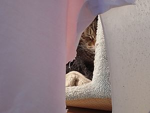 元祖黒トラが小屋の中にいた。出てこない。