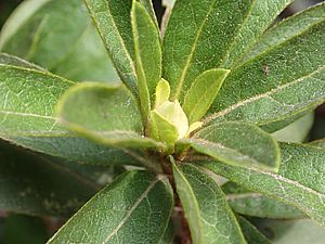 葉ボタンの先端につぼみがついた。
