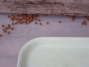ガチャミケに盗られたのか、それとも残りを食べているのか?超好評カリカリをみんなで食べている。